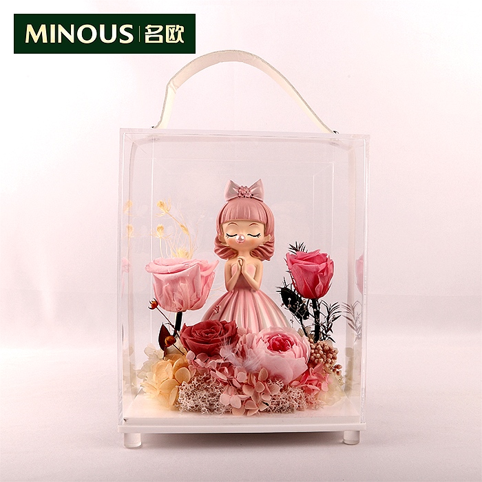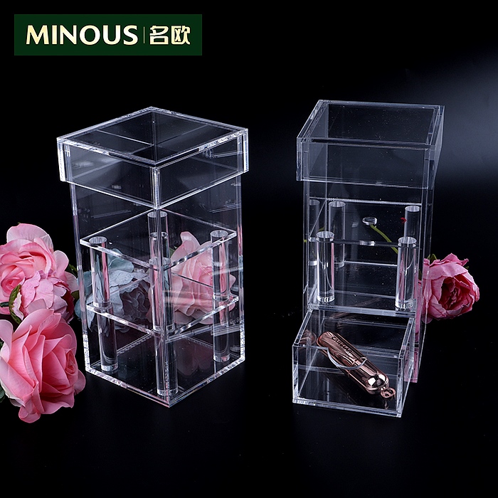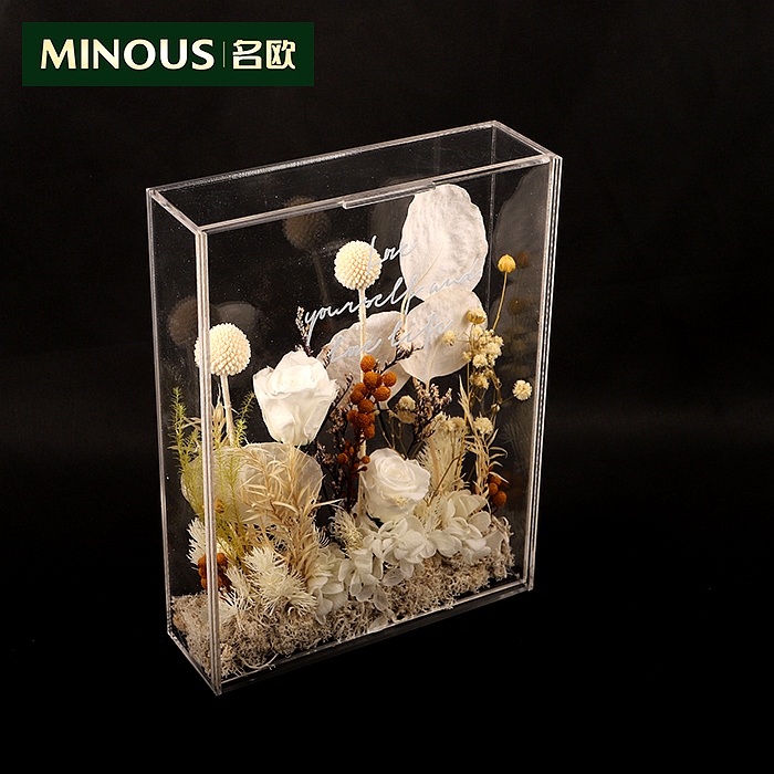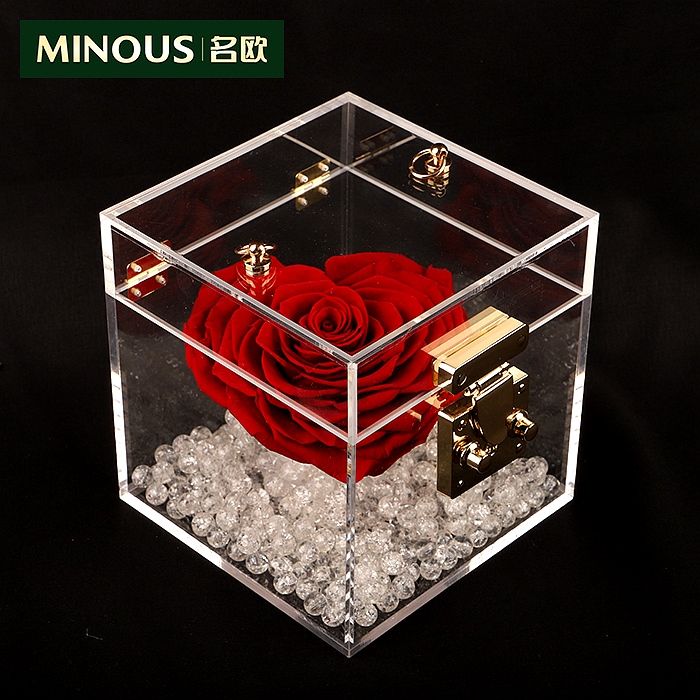 亚克力花盒可以放置和展示各种鲜花,干花,永生花。也可放水保持花的鲜活。分为有抽屉和无抽屉,也有各种孔的选择。具有高透视性,富有质感,美观高档。可放置花店,商场,聚会,高档场所等。相比传统花束,亚克力花盒有着很多不可替代的优点。从客户的角度来看,花盒体积小,容易携带,包装可与花束媲美,更能吸引顾客注意的。