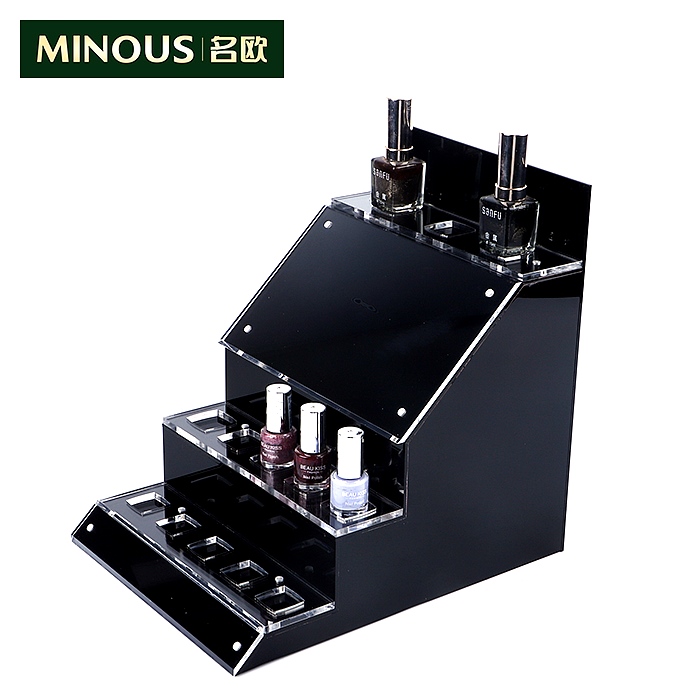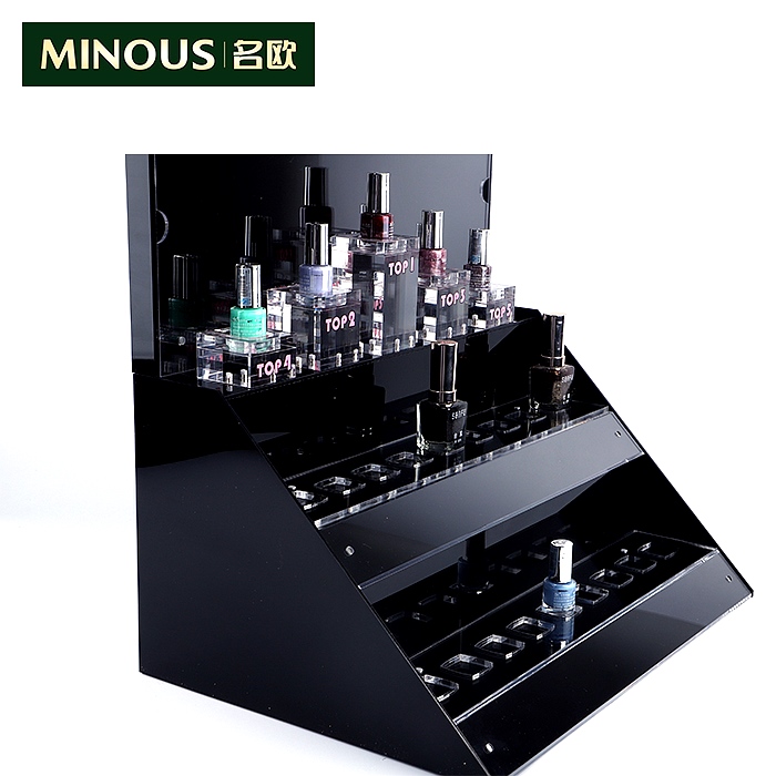 亚克力展示柜普遍以黑色和白色为主基调,面板为一体雕刻,边缘为无缝粘接,经典黑色放至多彩的彩妆用品,让#REF!的展柜更显多姿多彩。