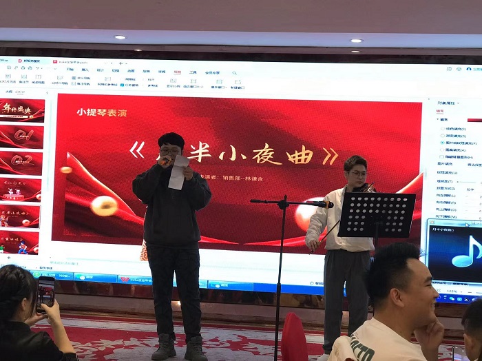年会现场气氛热烈,节目精彩纷呈。公司员工们为大家带来了一场视觉与听觉的盛宴。小提琴演奏如泣如诉,婉转悠扬,让人陶醉其中。而粤语歌唱表演则让#REF!重新回味一起的金典歌曲。