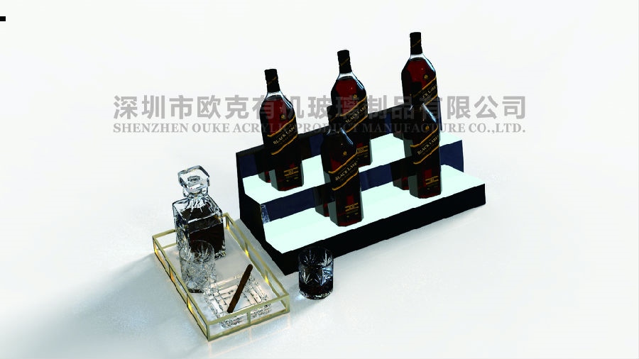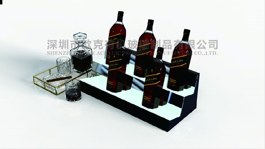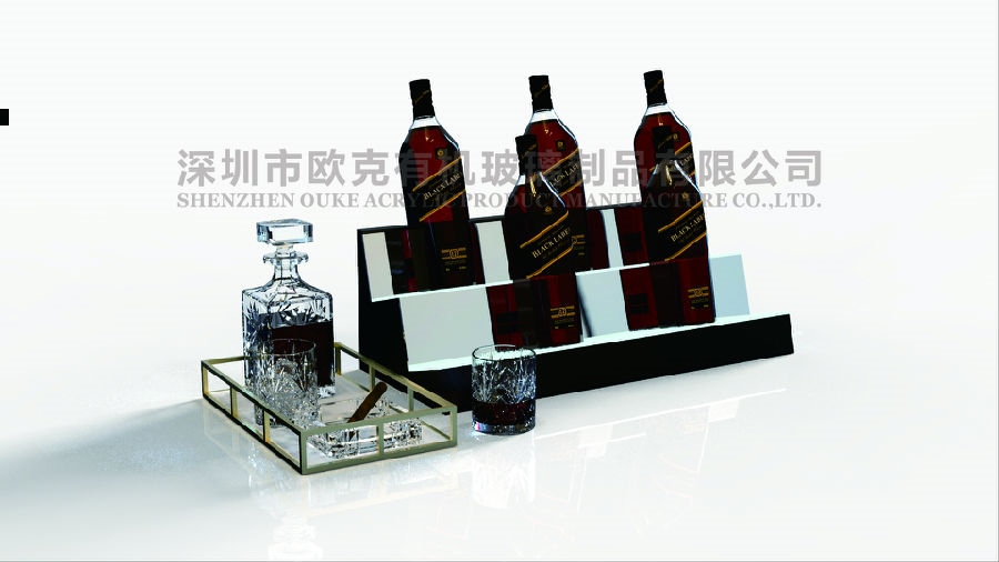 亚克力镜面酒水展示架。这样的设计目前只有#REF!家有哦!精选全新亚克力浇铸板材,高光透亮,清晰展示,底座采用公司专利无气泡粘接技术,粘贴了镜面个性点缀,非常的时尚精致好看。给您的店铺增加一份精致!有需要的客户可以直接联系#REF!哦~
